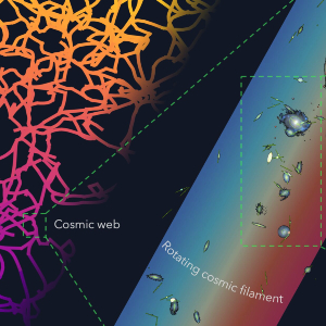 Ve vzdálenosti asi 140 milionů světelných let od nás se nachází vlákno kosmické pavučiny, dlouhé asi 50 milionů světelných let. Astronomové pozorováním galaxií v tomto vláknu zjistili, že toto vlákno rotuje, asi rychlostí 110 kilometrů za sekundu. Je to jedna z největších struktur ve vesmíru, kterou jsme přistihli při rotaci.